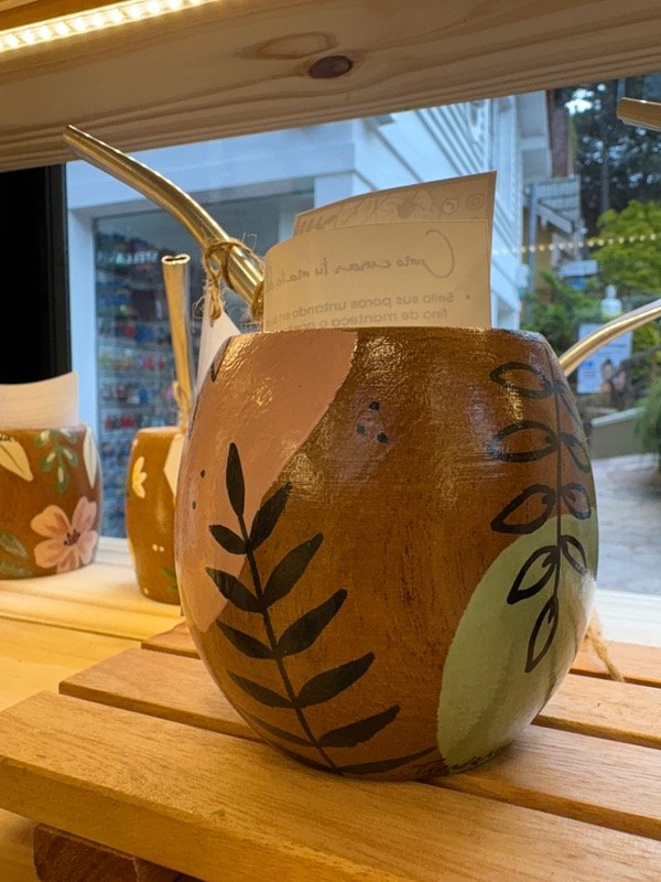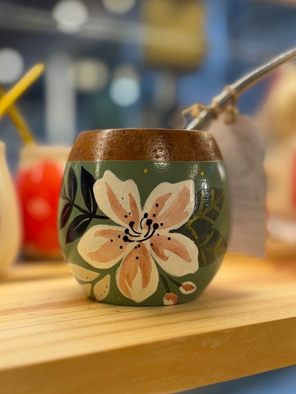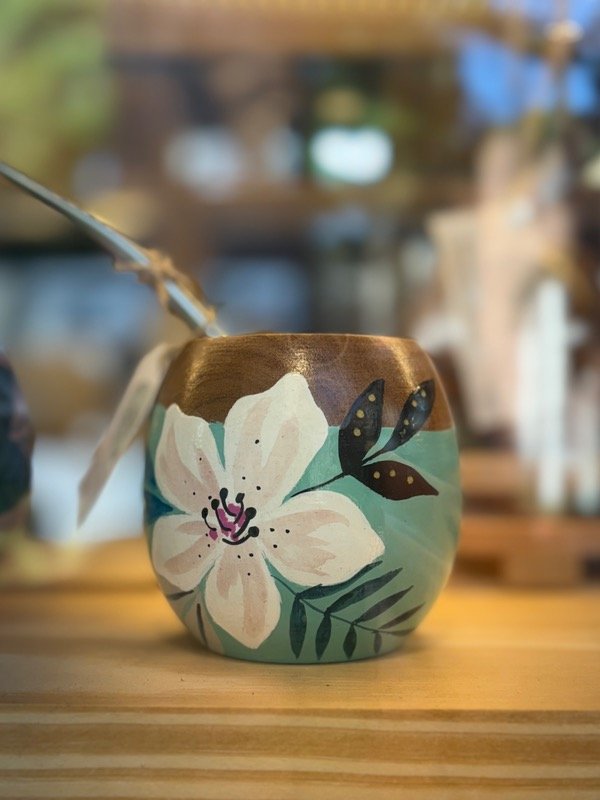 Mate de madera algarrobo, modelo redondo xl con diseño exclusivo pintado a mano.